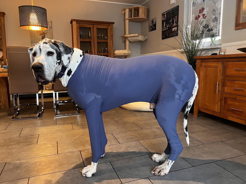 Unsere Bodys sind so konzipiert, dass sie über längere Zeiträume getragen werden können, ohne das Tier zu stören. Es ist jedoch wichtig, regelmäßig zu überprüfen, ob der Body gut sitzt und dein Haustier sich wohl fühlt.